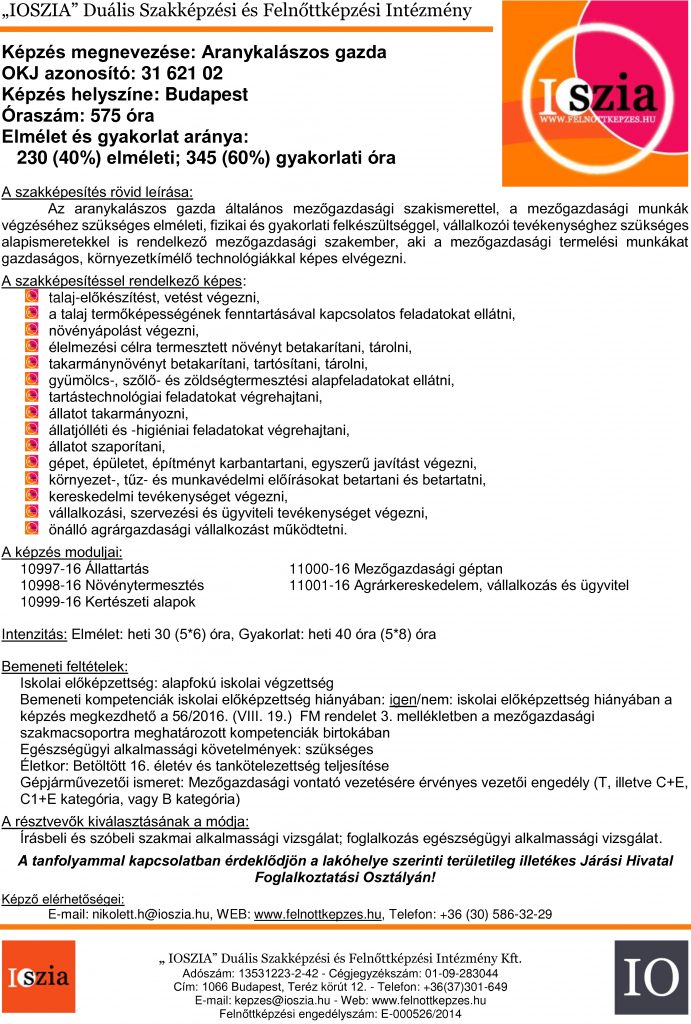 Aranykalászos gazda budapest IOSZIA felnőttképzés